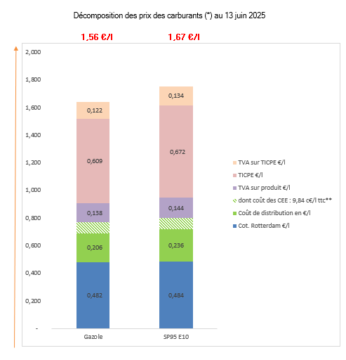 Les prix des carburants à la pompe varient en fonction de plusieurs paramètres comme le cours du baril de pétrole, le taux de change euro-dollar, le niveau des stocks de produits pétroliers et de la demande de pétrole, mais surtout des marges de raffinage, du coût de transport/distribution ainsi que des taxes opérées par le gouvernement.