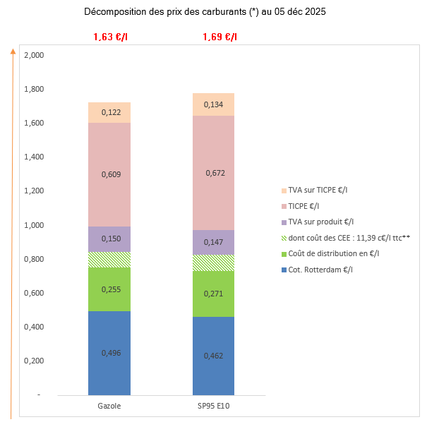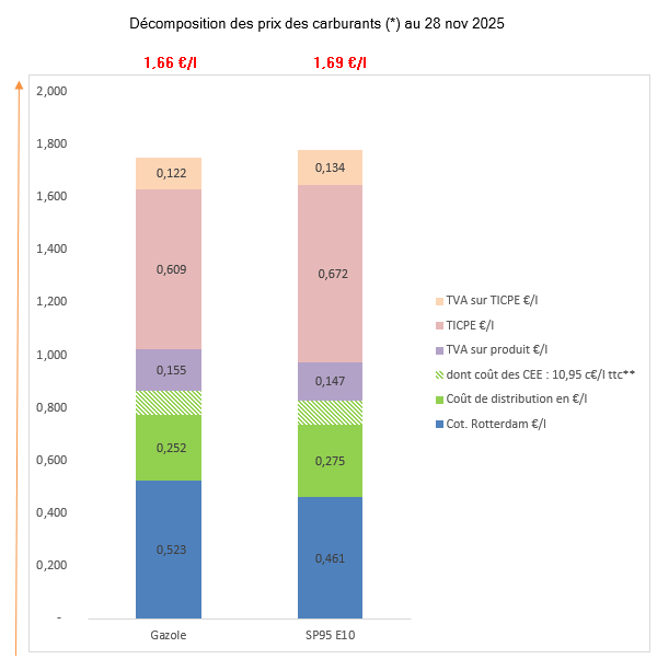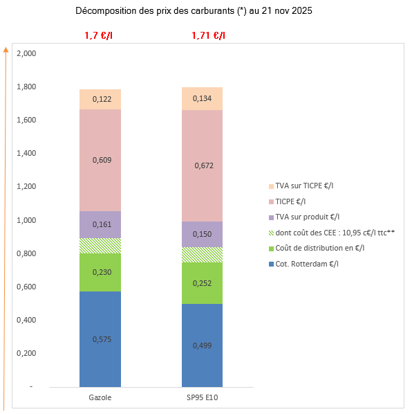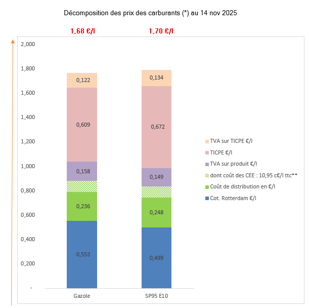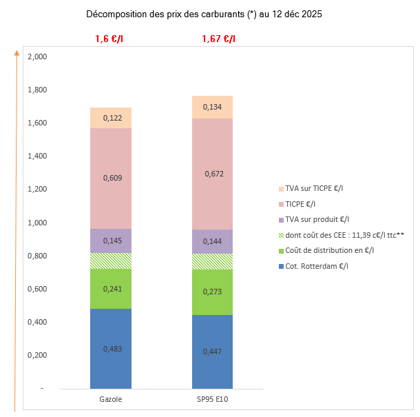 Les prix des carburants à la pompe varient en fonction de plusieurs paramètres comme le cours du baril de pétrole, le taux de change euro-dollar, le niveau des stocks de produits pétroliers et de la demande de pétrole, mais surtout des marges de raffinage, du coût de transport/distribution ainsi que des taxes opérées par le gouvernement.