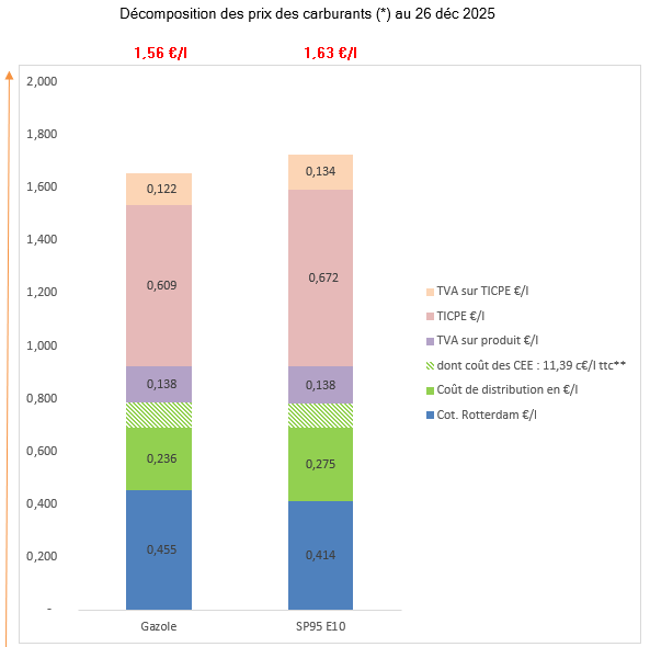 Les prix des carburants à la pompe varient en fonction de plusieurs paramètres comme le cours du baril de pétrole, le taux de change euro-dollar, le niveau des stocks de produits pétroliers et de la demande de pétrole, mais surtout des marges de raffinage, du coût de transport/distribution ainsi que des taxes opérées par le gouvernement.