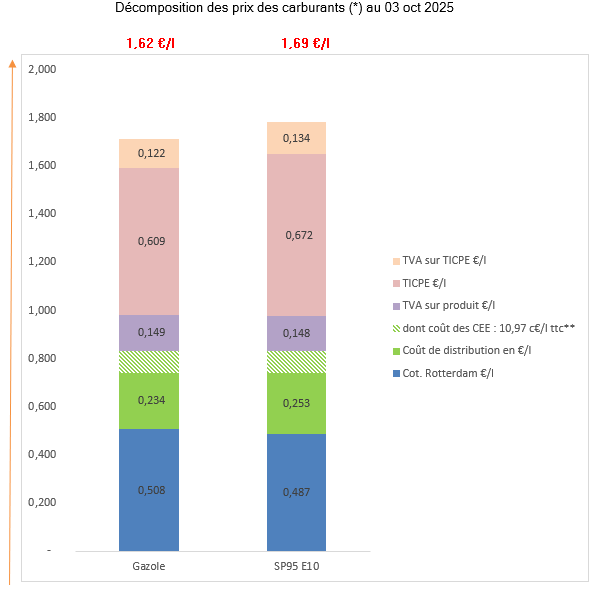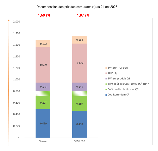 Les prix des carburants à la pompe varient en fonction de plusieurs paramètres comme le cours du baril de pétrole, le taux de change euro-dollar, le niveau des stocks de produits pétroliers et de la demande de pétrole, mais surtout des marges de raffinage, du coût de transport/distribution ainsi que des taxes opérées par le gouvernement.L'actualité des prix des carburants